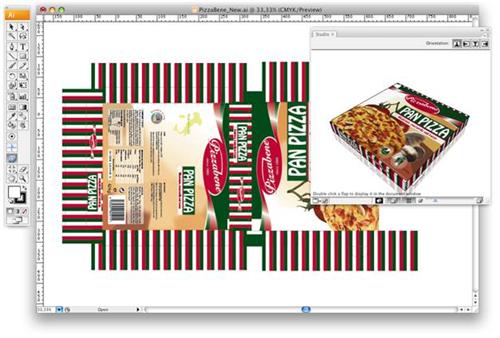 После того, как 3D-прототип готов, он встраивается в файл Adobe Illustrator. С помощью модуля Studio Designer теперь можно наложить на конструктив графику, увидеть результат, сохранить 3D PDF-файл для согласования с заказчиком.